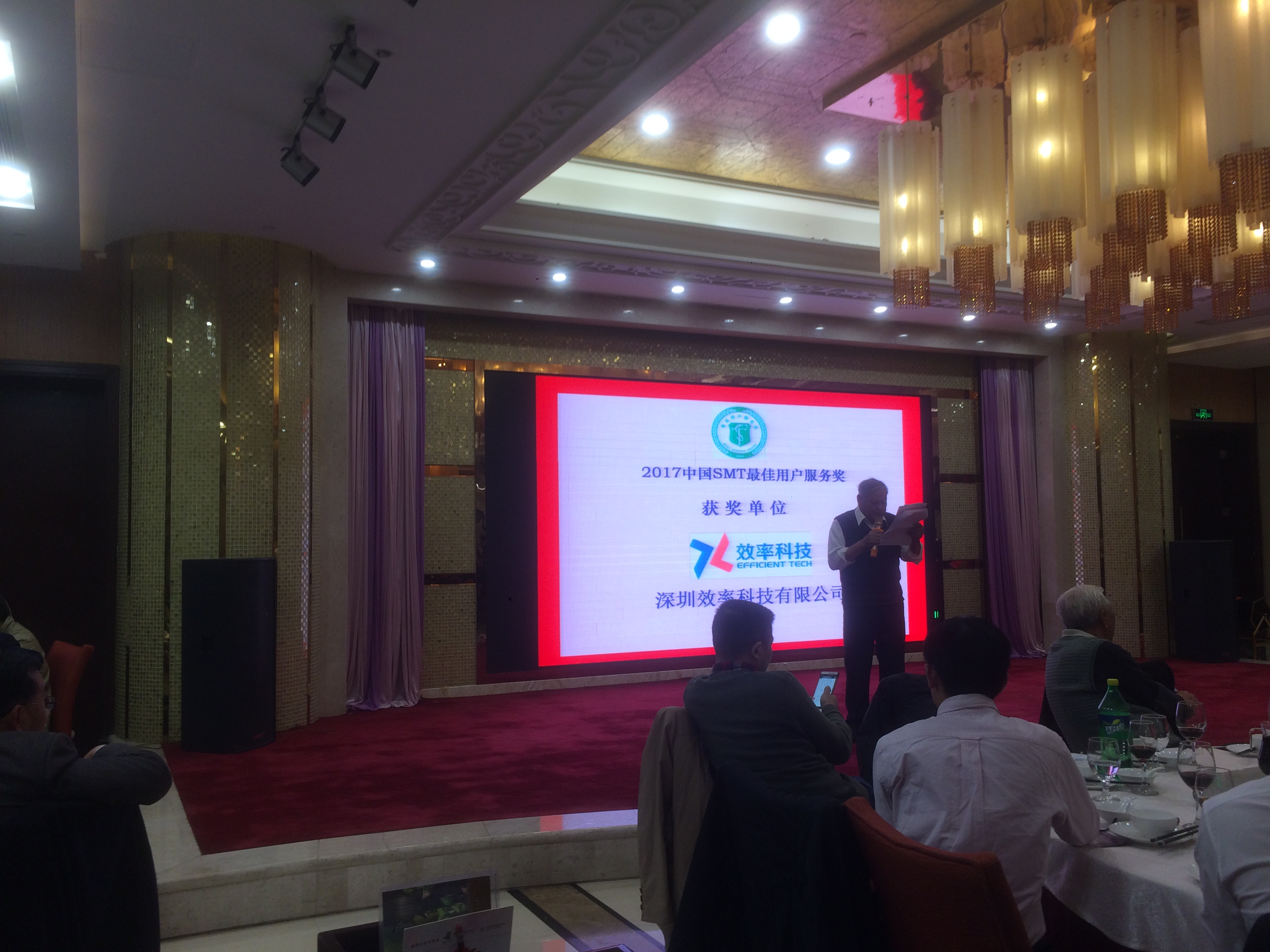 2017中國(guó)·華南SMT學(xué)術(shù)與應(yīng)用技術(shù)年會(huì)暨2017中國(guó)SMT創(chuàng)新成果獎(jiǎng)?lì)C獎(jiǎng)典禮于2017年12月19日在維納斯皇家酒店舉辦,會(huì)議由廣東省電子學(xué)會(huì)SMT專委會(huì)舉辦。華南學(xué)術(shù)與應(yīng)用技術(shù)年會(huì)已連續(xù)舉辦12屆,受到了華南地區(qū)客戶的一致好評(píng),本屆年會(huì)吸引了眾多SMT業(yè)界人士蒞臨,我司作為本次2017最佳用戶服務(wù)獎(jiǎng)獲得者,由業(yè)務(wù)部負(fù)責(zé)人出席本次活動(dòng),并上臺(tái)領(lǐng)獎(jiǎng)。