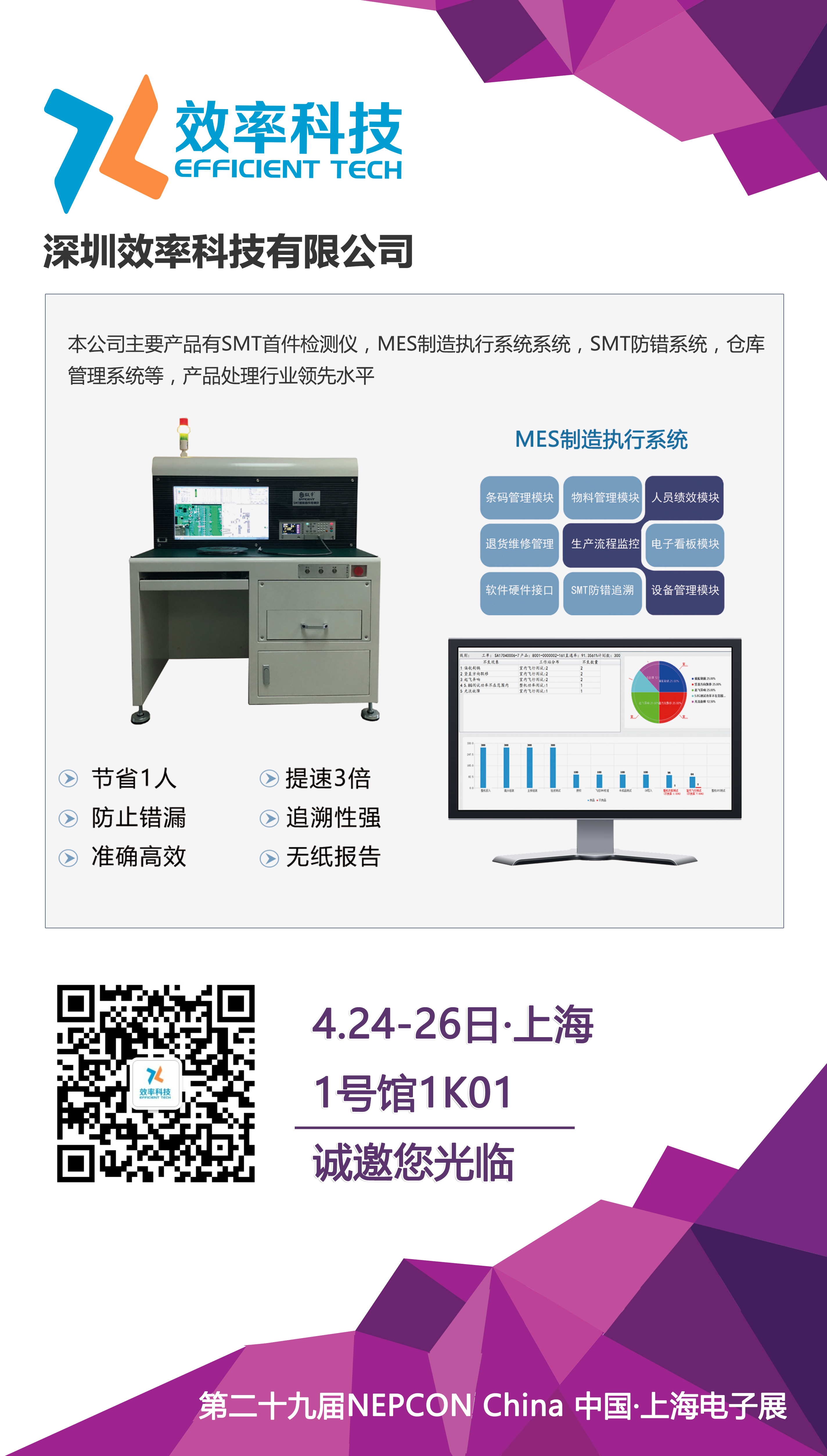 2019年4月24日-26日,效率科技將攜新的技術(shù)產(chǎn)品亮相2019上海NEPCON展會(huì)。