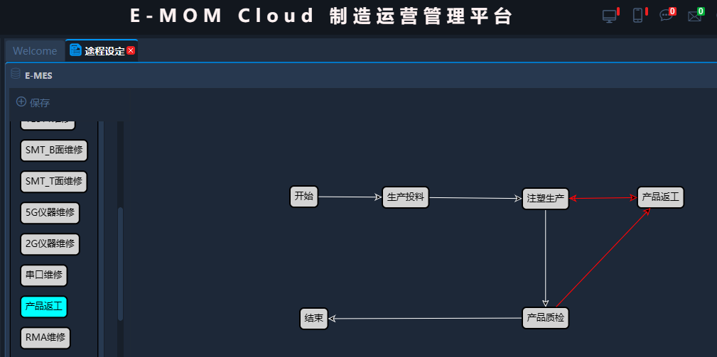 制程管理:工廠可根據實際管控需求,可在系統中自定義相對應制程管控點,以及制程管控點相對應工段、生產階段、統計段、節點監控等設定,設定后生成制程點,可用于途程中節點使用以及生產管理中數據采集監控點。