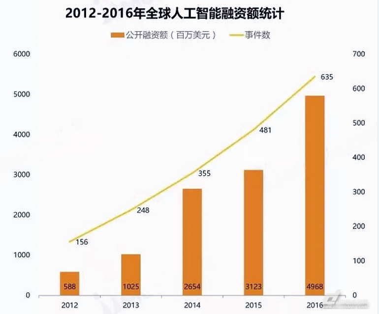 根據風投調研機構CBinsights統計的數據,截至2016年12月20日,全球人工智能領域融資事件數已達635宗,預計2016全年將達655宗,總融資額將達5.1億美元,見圖1。