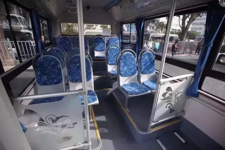 車身以白色為主,外貌和普通巴士沒有太大區(qū)別。藍灰相間的座椅、兩排頂蓋抓手,我們可以清晰看到智能巴士的駕駛位。其實,這種車輛與普通公交車的區(qū)別就是司機的手沒有扶方向盤!但是它的內(nèi)部區(qū)別可大了。